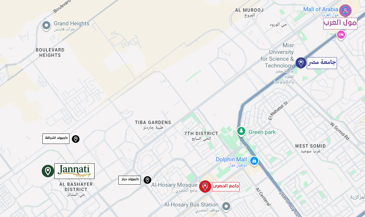 JANNATI project is located in the heart of 6th of October City, close to the most important axes, major malls, and main roads to facilitate access to everywhere.